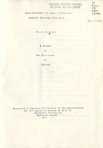 Audet, Pierre H (1975) Apprenticeship in early nineteenth century Montreal, 1790-1812. Masters thesis, Concordia University.