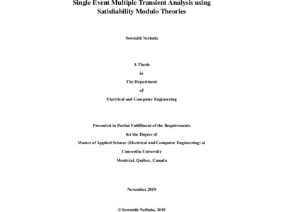 This thesis presents a new technique to model the effects of SEMTs on digital circuits based on Satisfiability Modulo Theories (SMT). The presented technique considers the layout-based adjacencies as SEMT originating sites and includes the effects of logical, electrical, and temporal masking while propagating the SEMT faults in the circuit. The technique is applied to the ISCAS’85 benchmark circuits and the 32-bit SPARC V8 based processor LEON3. The results show the proposed technique achieves an average speed-up of 12.64 while estimating the SER, when compared to conventional HDL based fault injection simulation techniques.
