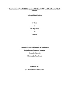 Brahim, Lahouari Zakaria (2023) Characterization of Two MAPK Phosphatases, MKP2 and DsPTP1, and Their Potential MAPK Substrates. Masters thesis, Concordia University.