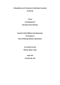Haverila, Kai C. (2023) Trolling Behaviors and Victimization in Online Brand Communities. PhD thesis, Concordia University.