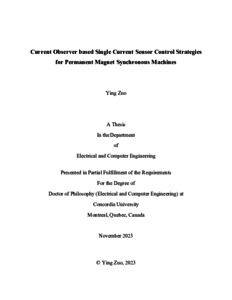 Zuo, Ying (2023) Current Observer based Single Current Sensor Control Strategies for Permanent Magnet Synchronous Machines. PhD thesis, Concordia University.