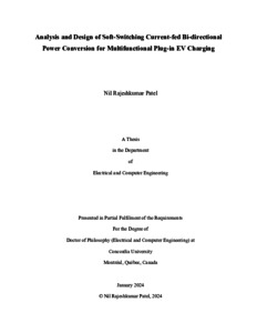Patel, Nil Rajeshkumar (2024) Analysis and Design of Soft-Switching Current-fed Bi-directional Power Conversion for Multifunctional Plug-in EV Charging. PhD thesis, Concordia University.