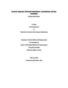 Sattari, Mohammadali (2024) Dynamic Properties of Bimodal Polyethylene: Crystallization and Flow Instabilities. PhD thesis, Concordia University.