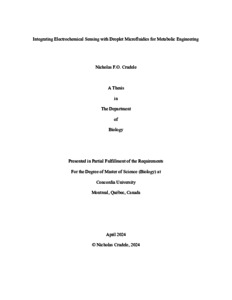 Crudele, Nicholas (2024) Integrating Electrochemical Sensing with Droplet Microfluidics for Metabolic Engineering. Masters thesis, Concordia University.