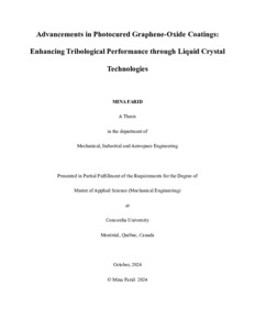 Farid, Mina (2024) Advancements in Photocured Graphene-Oxide Coatings: Enhancing Tribological Performance through Liquid Crystal Technologies. Masters thesis, Concordia University.