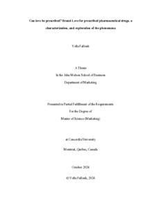 Fallouh, Yolla (2024) Can love be prescribed? Brand Love for prescribed pharmaceutical drugs, a characterization, and exploration of the phenomena. Masters thesis, Concordia University.