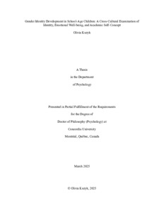 Kuzyk, Olivia (2025) Gender Identity Development in School-Age Children: A Cross-Cultural Examination of Identity, Emotional Well-being, and Academic Self-Concept. PhD thesis, Concordia University.