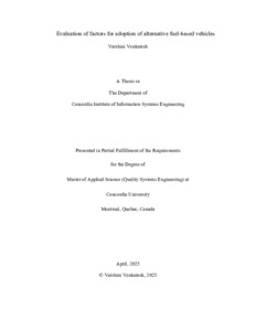 Venkatesh, Varshini (2025) Evaluation of factors for adoption of alternative fuel-based vehicles. Masters thesis, Concordia University.
