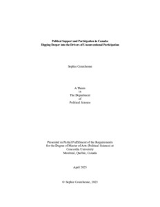 Courchesne, Sophie (2025) Political Support and Participation in Canada: Digging Deeper into the Drivers of Unconventional Participation. Masters thesis, Concordia University.