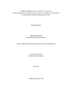 Quintero, Adelaida (2025) Critique de traduction de Los traductores en la historia, version espagnole de Les traducteurs dans l’histoire / Translators through History de Jean Delisle et Judith Woodsworth (dir) (1995). Masters thesis, Concordia University.
