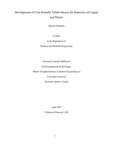 Mansouri, Maryam (2025) Development of User-Friendly Tablet Sensors for Detection of Copper and Nitrite. Masters thesis, Concordia University.