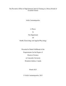 Constantopoulos, Sofia (2025) The Preventive Effect of High-Intensity Interval Training in a Mouse Model of Essential Tremor. Masters thesis, Concordia University.