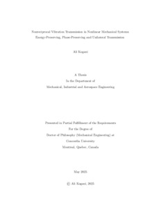 Kogani, Ali (2025) Nonreciprocal Vibration Transmission in Nonlinear Mechanical Systems: Energy-Preserving, Phase-Preserving and Unilateral Transmission. PhD thesis, Concordia University.