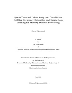 Nejadshamsi, Shayan (2025) Spatio-Temporal Urban Analytics: Data-Driven Building Occupancy Estimation and Graph Deep Learning for Mobility Demand Forecasting. PhD thesis, Concordia University.