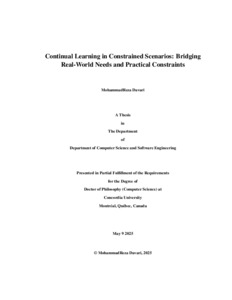 Davari, MohammadReza (2025) Continual Learning in Constrained Scenarios: Bridging Real-World Needs and Practical Constraints. PhD thesis, Concordia University.