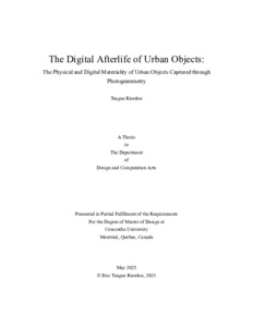 Riordon, Eric (2025) Digital Afterlife: The Physical and Digital Materiality of Urban Objects Captured through Photogrammetry. Masters thesis, Concordia University.