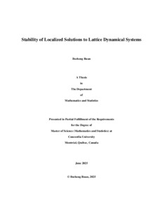 Ruan, Bocheng (2025) Stability of Localized Solutions to Lattice Dynamical Systems. Masters thesis, Concordia University.