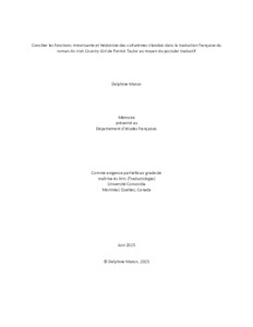 Maton, Delphine (2025) Concilier les fonctions minorisante et hédoniste des culturèmes irlandais dans la traduction française du roman An Irish Country Girl de Patrick Taylor au moyen du postulat traductif. Masters thesis, Concordia University.