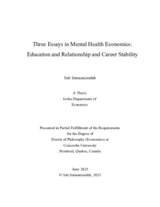 Semnanizadeh, Sati (2025) Three Essays in Mental Health Economics: Education and Relationship and Career Stability. PhD thesis, Concordia University.