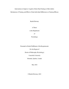 Downey, Rachel (2025) Interventions to Improve Cognitive-Motor Dual Tasking in Older Adults: Mechanisms of Training and Effects of Inter-Individual Differences on Training Efficacy. PhD thesis, Concordia University.
