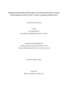 Siadat, Seyed Amir Hossein (2025) Exploring the Representation of Private Sphere in First-Person Documentaries by Iranian Women Filmmakers from 2011 to 2024: A Study on Amateurism and Home Movies. Masters thesis, Concordia University.