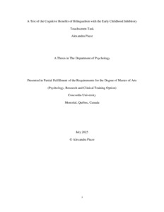 Piuze, Alexandra (2025) A Test of the Cognitive Benefits of Bilingualism with the Early Childhood Inhibitory Touchscreen Task. Masters thesis, Concordia University.
