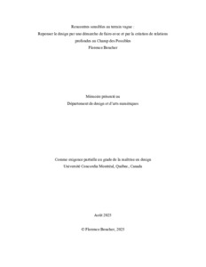 Boucher, Florence (2025) Rencontres sensibles au terrain vague : Repenser le design par une démarche de faire-avec et par la création de relations profondes au Champ des Possibles. Masters thesis, Concordia University.
