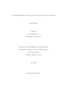 Toharia, David (2025) Curve Shortening Flow of Closed Curves in the Plane and on Curved Surfaces. Masters thesis, Concordia University.