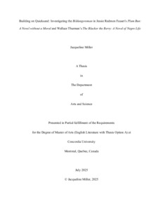 Miller, Jacqueline (2025) Building on quicksand: investigating the Bildungsroman in Jessie Redmon Fauset's Plum Bun A Novel without a Moral and Wallace Thurman's The Blacker the Berry A Novel of Negro Life. Masters thesis, Concordia University.