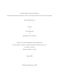 Aghababaeyan, Nahid (2025) Towards Reliable Image Classification: A Systematic Robustness Analysis of CNN and Classical Models Under Natural Corruptions. Masters thesis, Concordia University.
