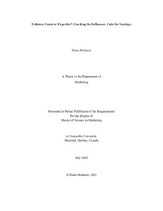 Mohsenitakalloo, Elahe (2025) Follower Count or Expertise? Cracking the Influencer Code for Startups. Masters thesis, Concordia University.