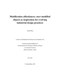 Berg, Abygail (2025) Modification affordances: user-modified objects as inspiration for evolving industrial design practices. Masters thesis, Concordia University.