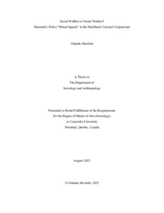 Nicoletti, Orlando (2025) Social Welfare or Social Warfare? Montreal’s Police “Mixed Squads” in the Neoliberal-Carceral Conjuncture. Masters thesis, Concordia University.