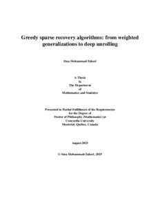 Mohammad-Taheri, Sina (2025) Greedy sparse recovery algorithms: from weighted generalizations to deep unrolling. PhD thesis, Concordia University.