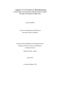 Heuillard, Antoine (2025) Agency Co-Creation in Speedrunning: A New Form of Community Driven Value Creation Through Transgressive Behaviors. Masters thesis, Concordia University.