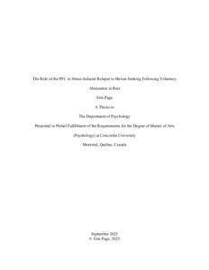 Page, Erin (2025) The Role of the PFC in Stress-Induced Relapse to Heroin Seeking Following Voluntary Abstinence in Rats. Masters thesis, Concordia University.
