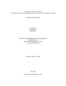 Ochoa Ronderos, Manuela (2025) Can You Hear the Trees Talking? A collaborative arts-based methodology to listen to survivors of sociopolitical violence. PhD thesis, Concordia University.