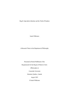 Wilkinson, Isaiah (2025) Hegel’s Speculative Idealism and the Truth of Freedom. Masters thesis, Concordia University.