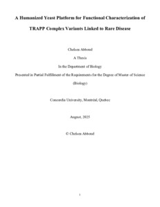 Abboud, Chelsea (0008) A Humanized Yeast Platform for Functional Characterization of TRAPP Complex Variants Linked to Rare Disease. Masters thesis, Concordia University.