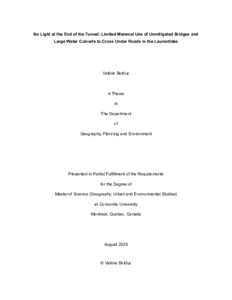 Bolduc, Valerie (2025) No Light at the End of the Tunnel: Limited Mammal Use of Unmitigated Bridges and Large Water Culverts to Cross Under Roads in the Laurentides. Masters thesis, Concordia University.