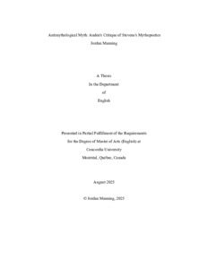 Manning, Jordan (2025) Antimythological Myth: Auden's Critique of Stevens's Mythopoetics. Masters thesis, Concordia University.