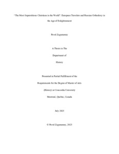 Zagumenny, Pavel (2025) “The Most Superstitious Christians in the World”: European Travelers and Russian Orthodoxy in the Age of Enlightenment. Masters thesis, Concordia University.