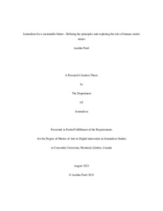 Patel, Aashka (2025) Journalism for a sustainable future - Defining the principles and exploring the role of human centric stories. Masters thesis, Concordia University.