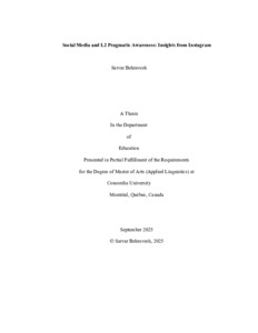 Behravesh, Sarvar (2025) Social Media and L2 Pragmatic Awareness: Insights from Instagram. Masters thesis, Concordia University.