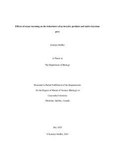 Moffat, Katelyn (2025) Effects of ocean warming on the behaviours of an invasive predator and native keystone prey. Masters thesis, Concordia University.
