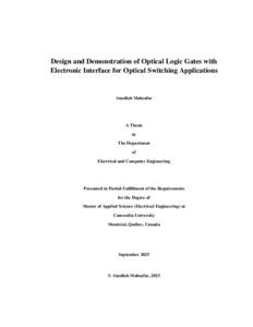 Mahsafar, Ataollah (2025) Design and Demonstration of Optical Logic Gates with Electronic Interface for Optical Switching Applications. Masters thesis, Concordia University.