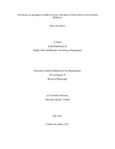 Ali Adeeb, Rana (2025) Two Essays on the Impact of Affect on Users’ Perception of Fake News on Social Media Platforms. PhD thesis, Concordia University.