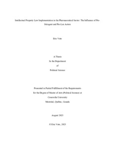 Veto, Eric (2025) Intellectual Property Law Implementation in the Pharmaceutical Sector: The Influence of Pro-Stringent and Pro-Lax Actors. Masters thesis, Concordia University.