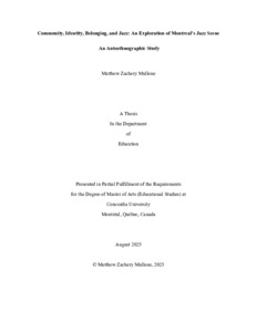 Mullone, Matthew (2025) Community, Identity, Belonging, and Jazz: An Exploration of Montreal’s Jazz Scene. Masters thesis, Concordia University.