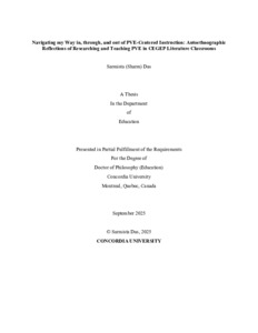 Das, Sarmista (2025) Navigating my Way in, through, and out of PVE-Centered Instruction: Autoethnographic Reflections of Researching and Teaching PVE in CEGEP Literature Classrooms. PhD thesis, Concordia University.